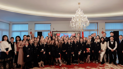 蔡革大使向来宾致以新春祝福并表示,中国历史悠久,自然和人文景观独特、美丽,现代科技高速发展,强调学好中文大有裨益,鼓励大家在中文学习中更上一层楼,做增进中斯两国和两国人民了解和友谊的使者。